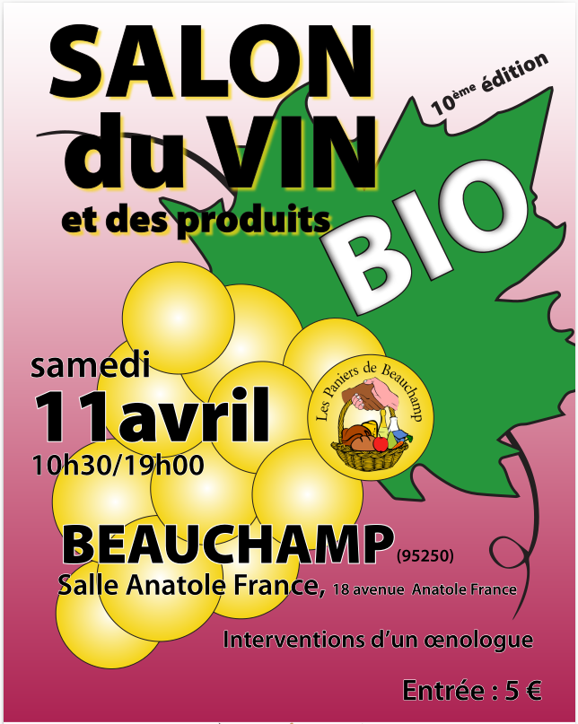 Le 11 avril 2026 se tiendra notre 10ème édition du Salon du Vin BIO de Beauchamp